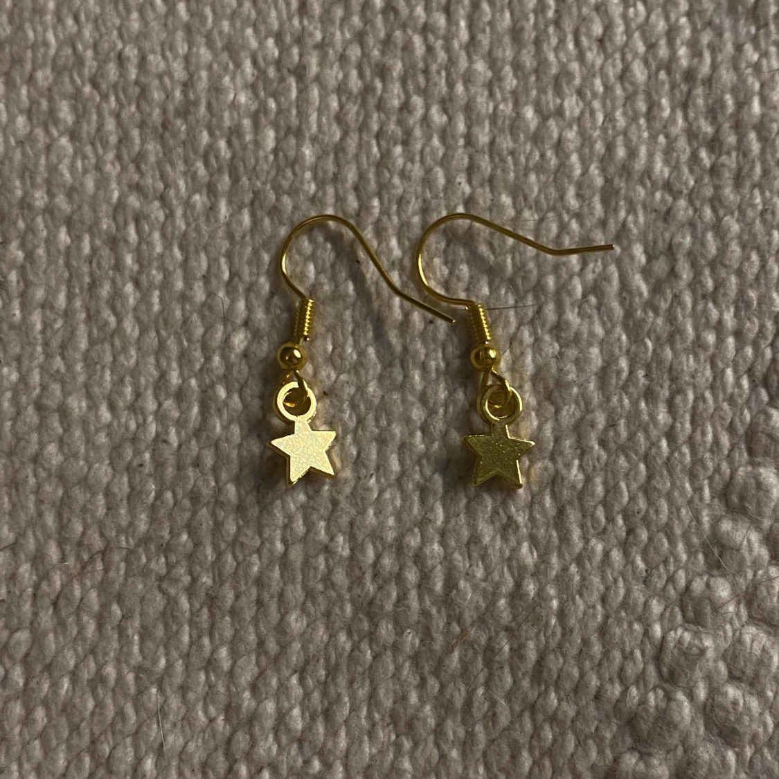 Öronhängen med guld stjärnor super lätt enkel inte alls tung att bära och är nickel fria såklart frakten ligger på 15 kr man får fraktbevis 💖