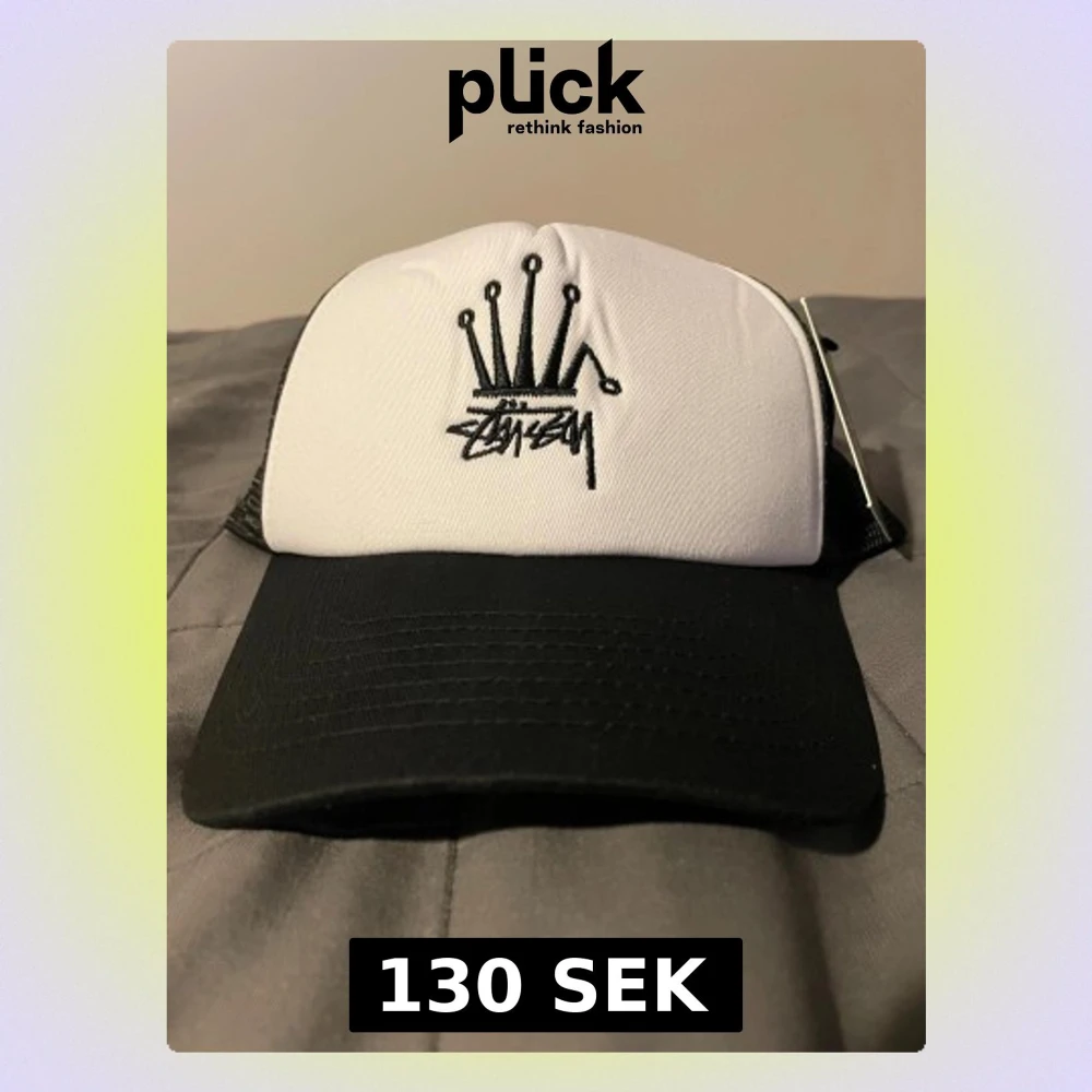 Snygg truckerkeps från Stüssy i svart och vitt med klassisk Stüssy-logga och kronbroderi framtill. Kepsen har mesh på sidorna och justerbar snapback baktill. Perfekt för streetwear och att lyfta din stil.