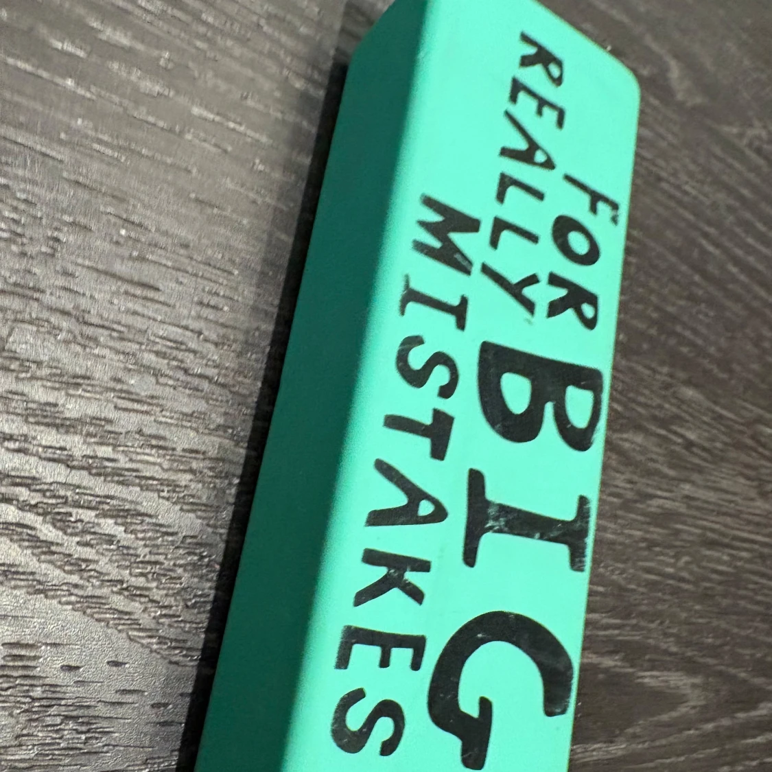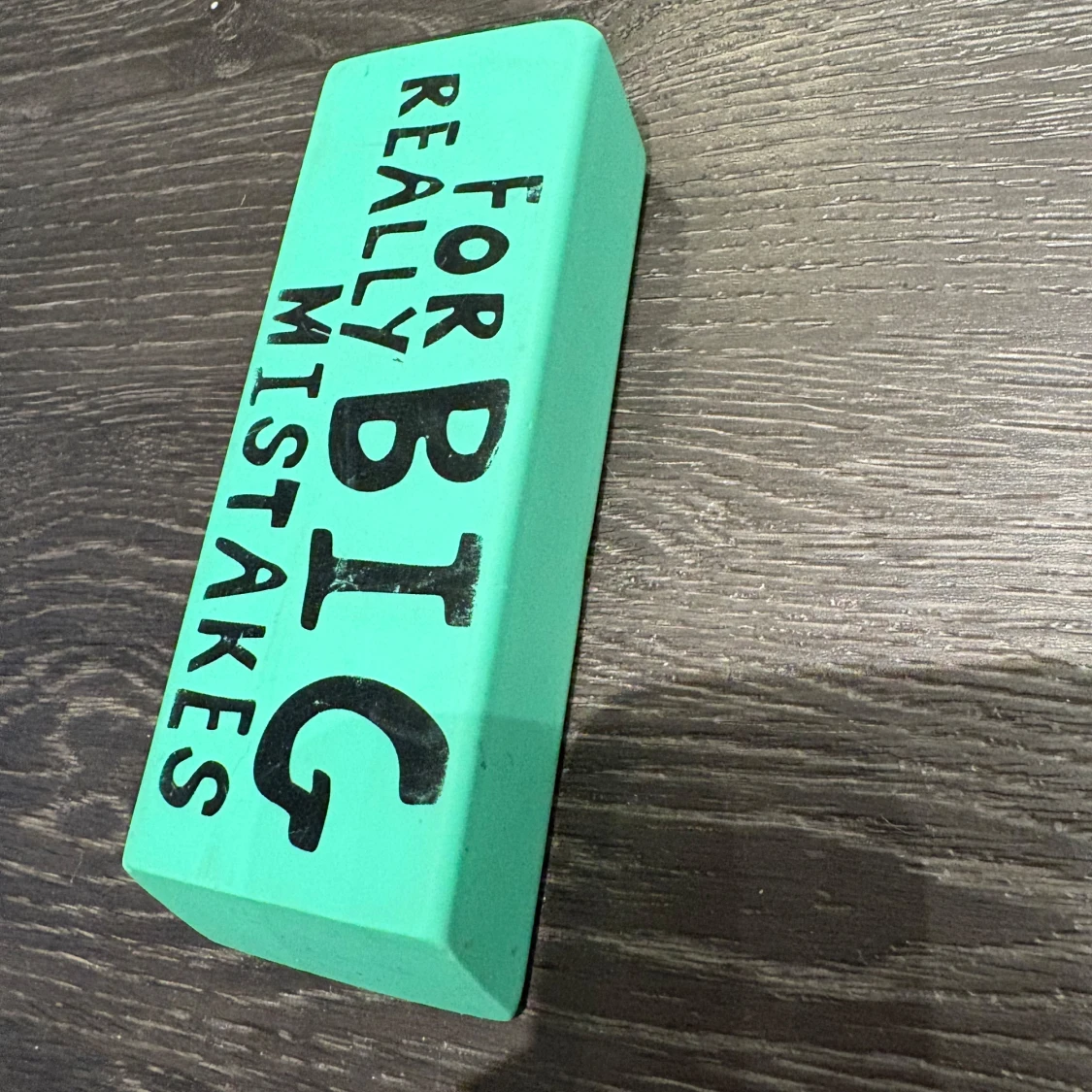 Det här är en stor, turkos suddgummi med texten 'For Really Big Mistakes' i svart. Perfekt för dig som vill sudda ut stora misstag med humor! Passar utmärkt som rolig present eller till skrivbordet för att lätta upp stämningen bland vänner och klasskamrater.