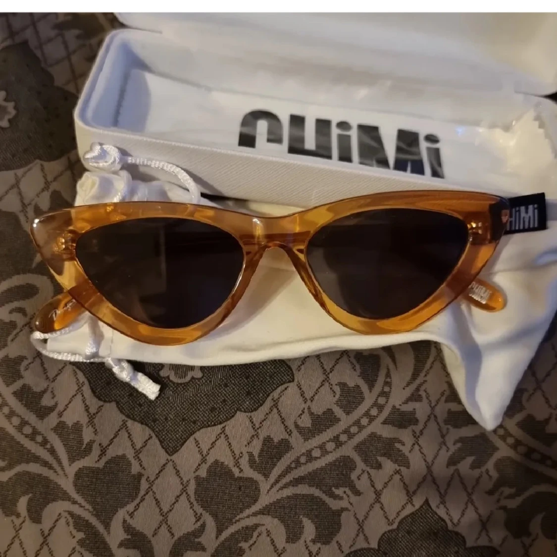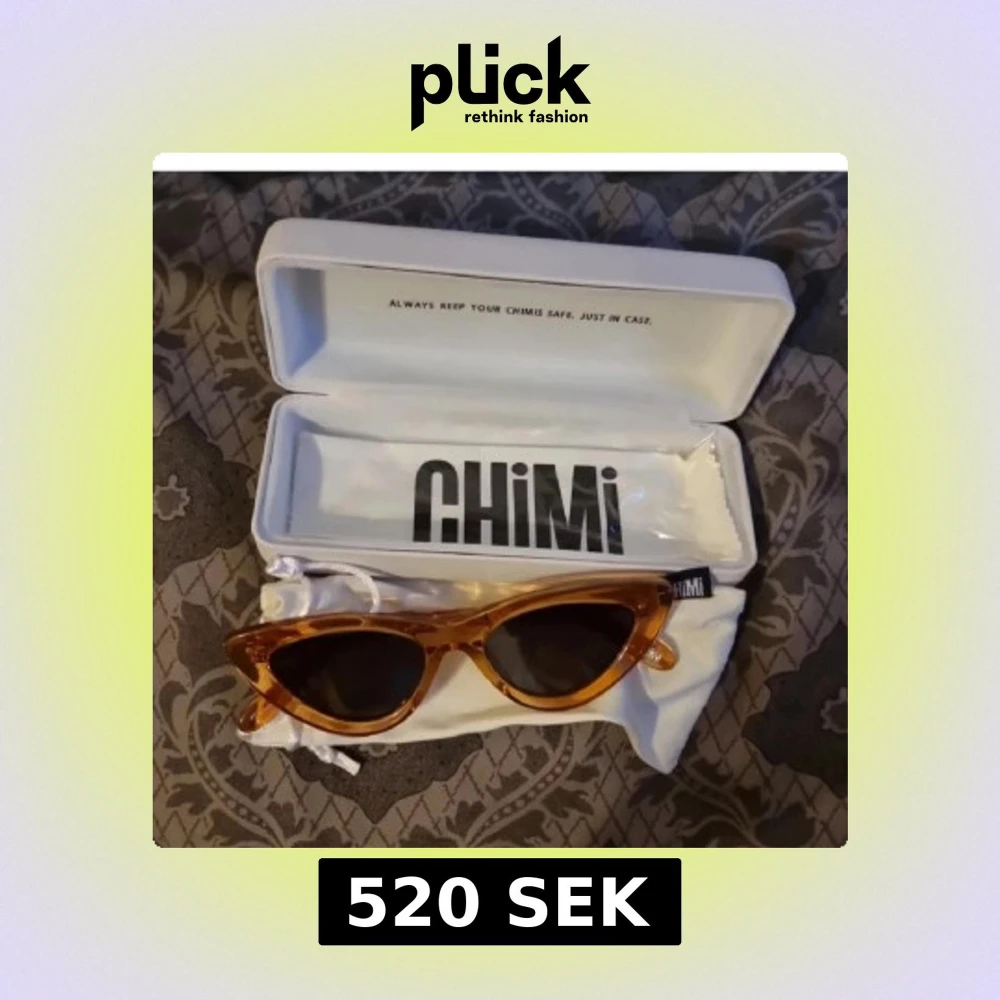 Snygga Chimi solglasögon i modellen #006 med cat-eye form och transparent peachfärgad båge. Kommer med originalfodral och putsduk. Går ej att köpa längre. Helt nya och oanvända.