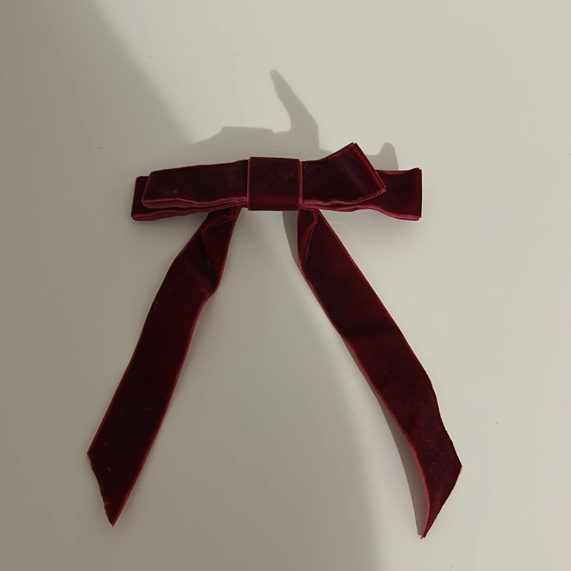 Superfin vinröd rosett i sammmets tyg från Petite Olivia, använd en gång💓💓säljer en likadan i grön, båda för 250💗💗priset går att diskutera🩷🩷🩷