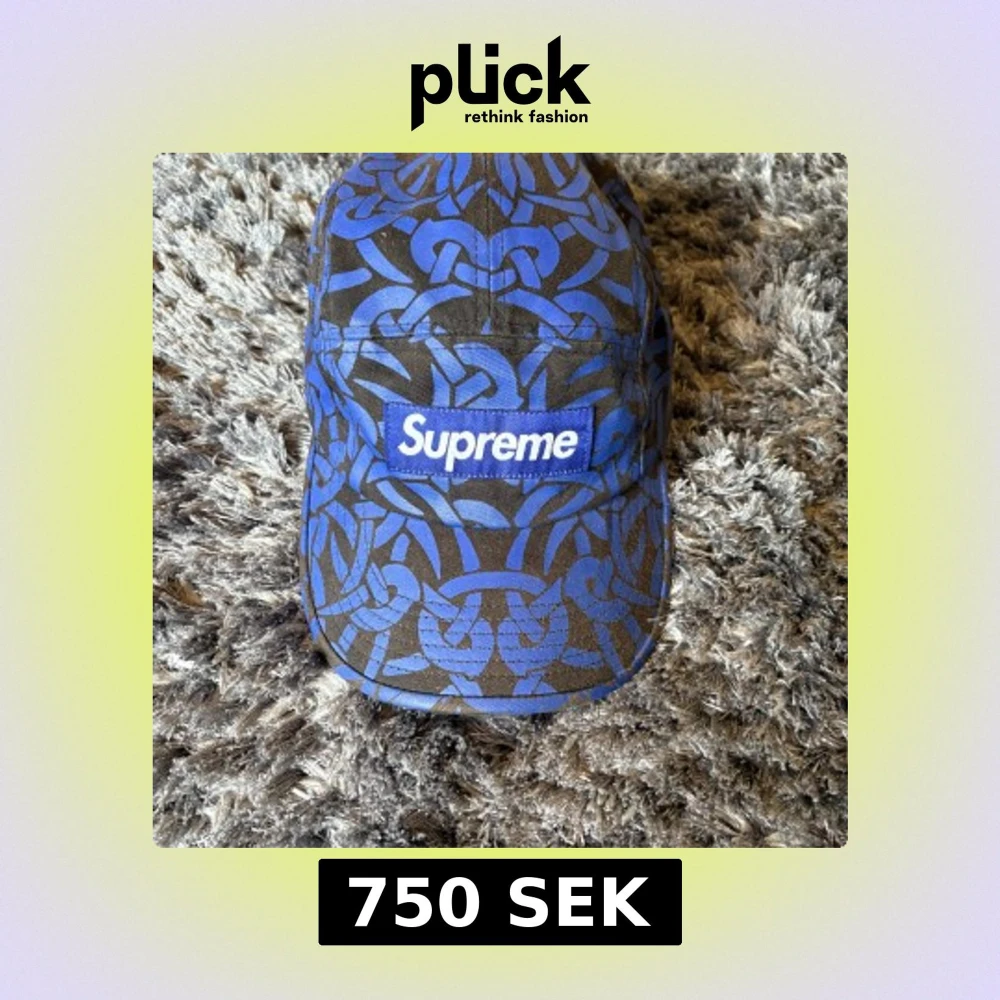 Hej! Jag säljer en supreme Celtic knot camp cap som är väldigt exklusiv eftersom den är köpt 2021 i Paris ( alltså en äldre version ) kepsen kostade väll runt 1000 kr ny och den går för runt 1000 kr resell. Kepsen är i väldigt bra skick och är nästan aldrig använd. Perfekt nu inför hösten! Kepsen passar alla pågrund av spännet bak på kepsen!