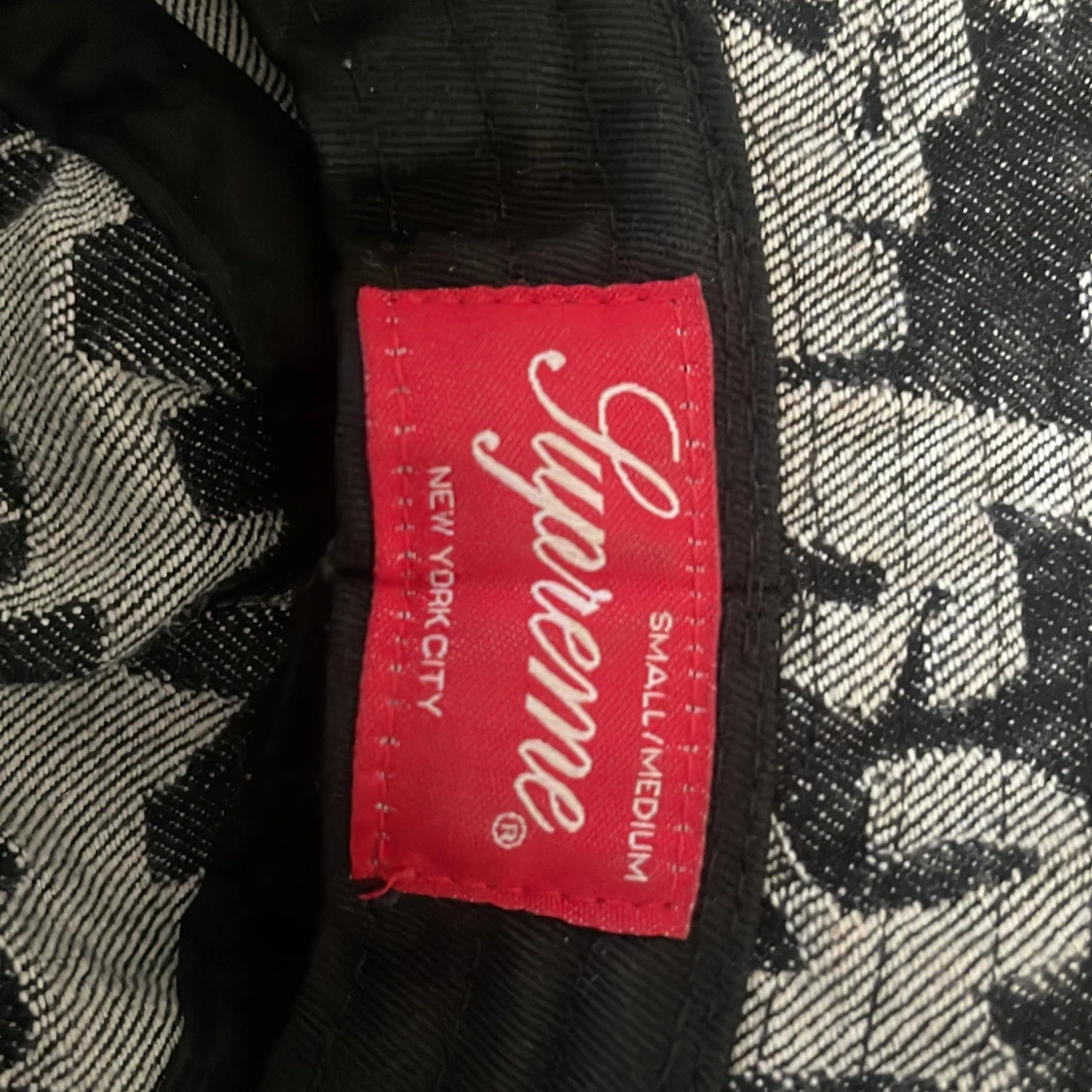 Supreme bucket hat i svart och vitt med grafittiliknande mönster. Hatten har en klassisk form och är tillverkad i ett kraftigare tyg. Perfekt för att sticka ut i mängden.