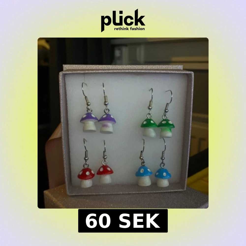 Fyra par örhängen formade som små svampar, aldrig använda. 15kr för ett par örhängen. Skriv vid frågor❤️