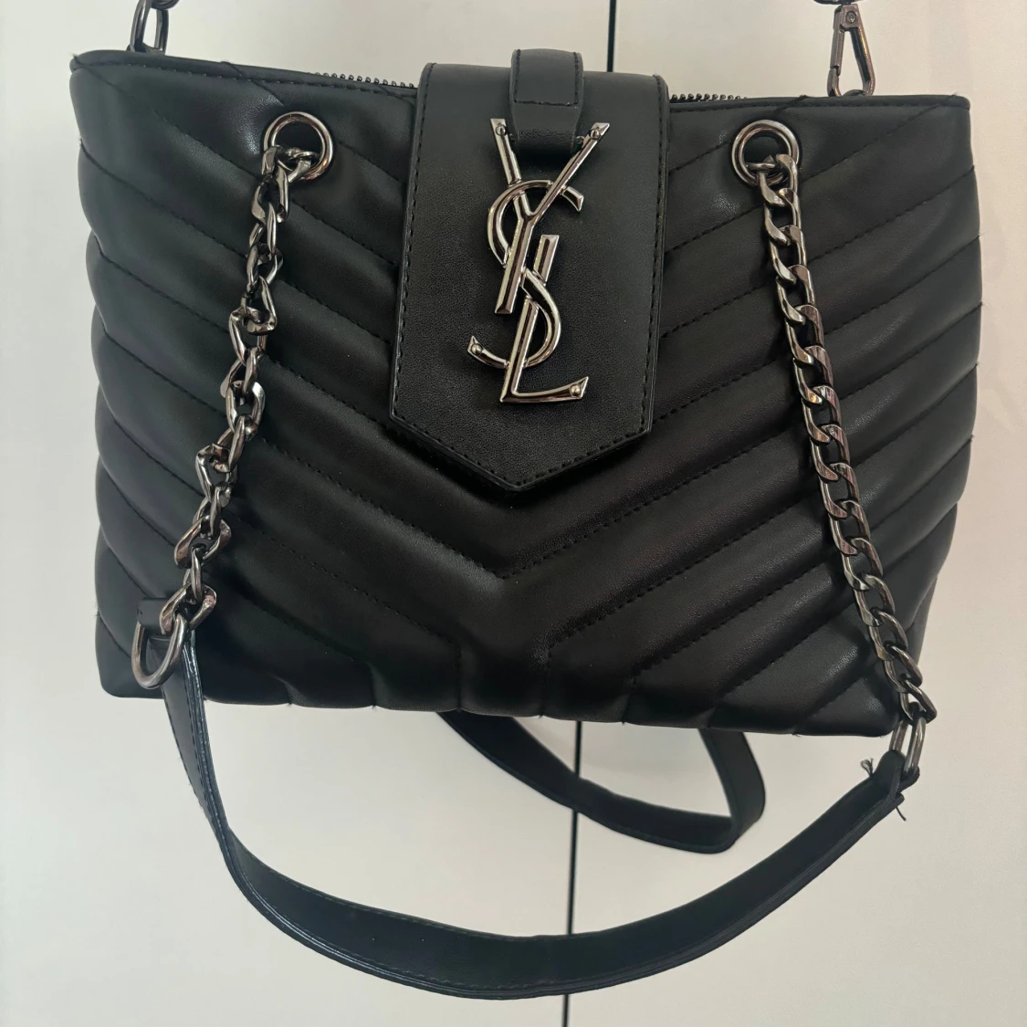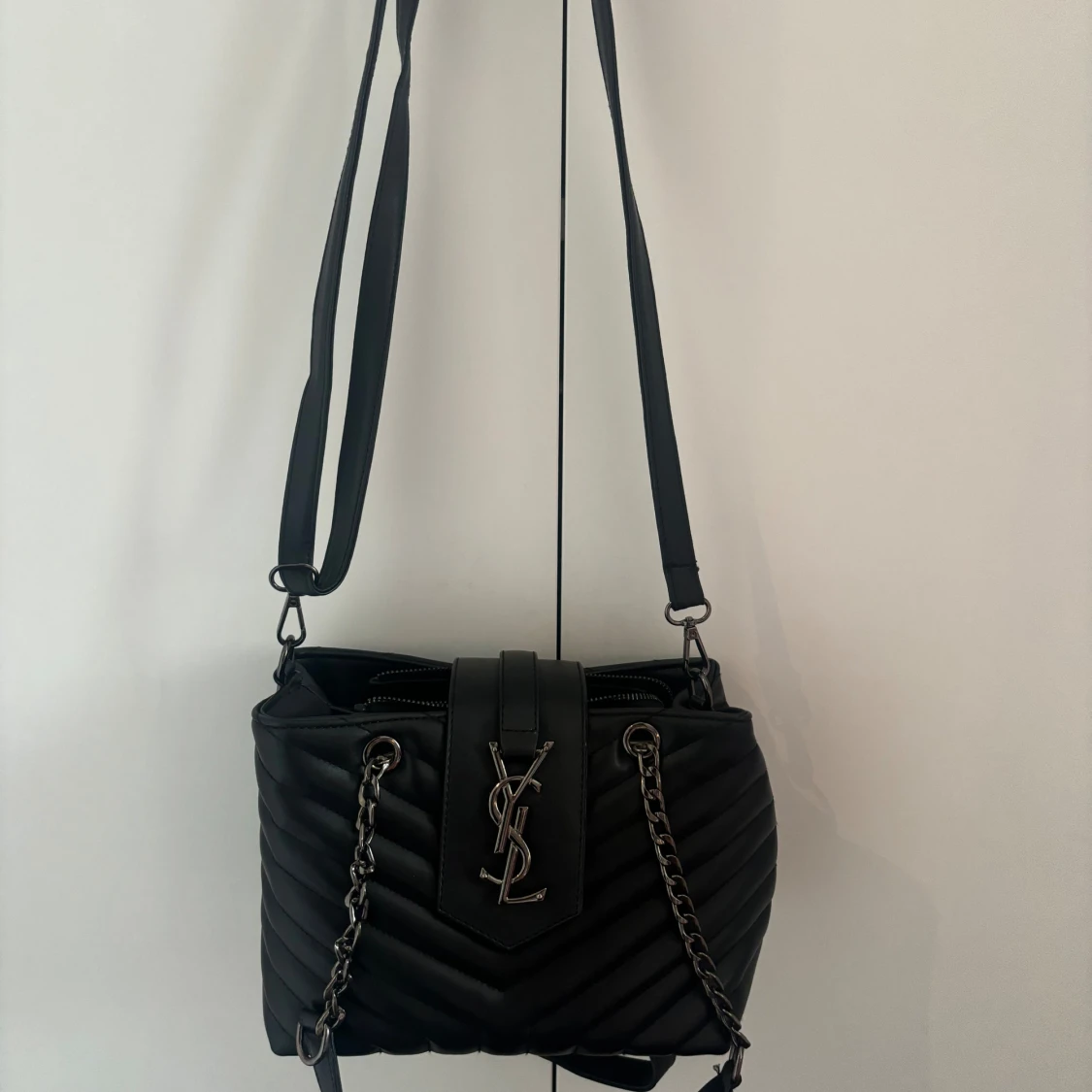 Ny svart axelremsväska, går att bara ha kedjehandtagen och ta bort crossbody rem