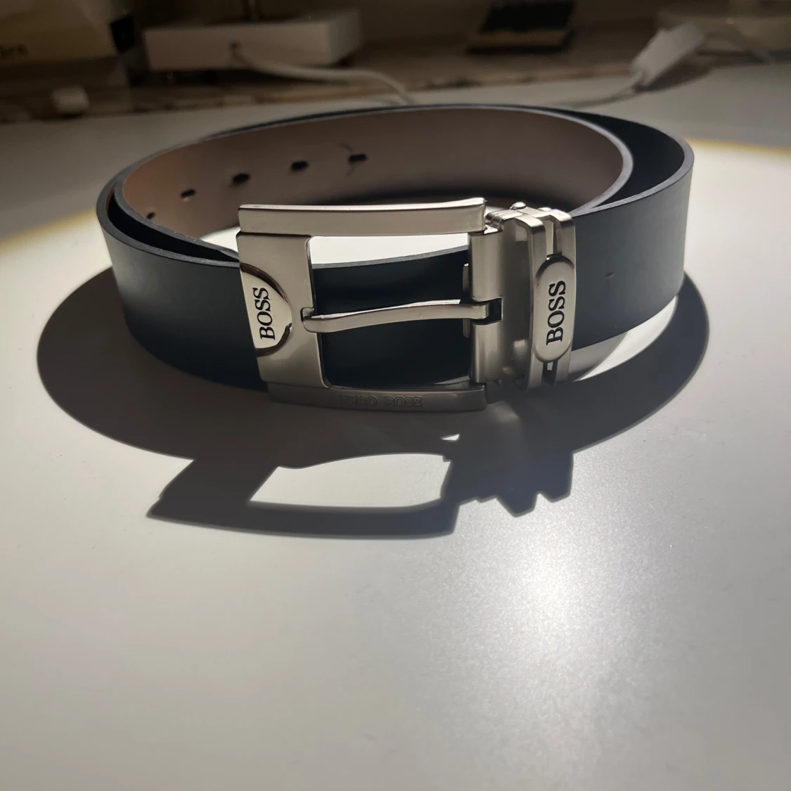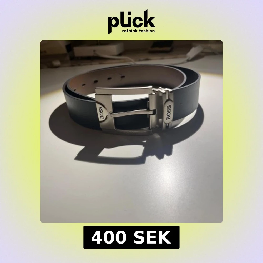 Snyggt svart bälte från Boss med en stilren silverfärgad spänne. Perfekt för att ge en elegant touch till din outfit. Tillverkat i högkvalitativt material för en lyxig känsla. Finns inget kvitto därför det säljs så billigt, skriv vid frågor!