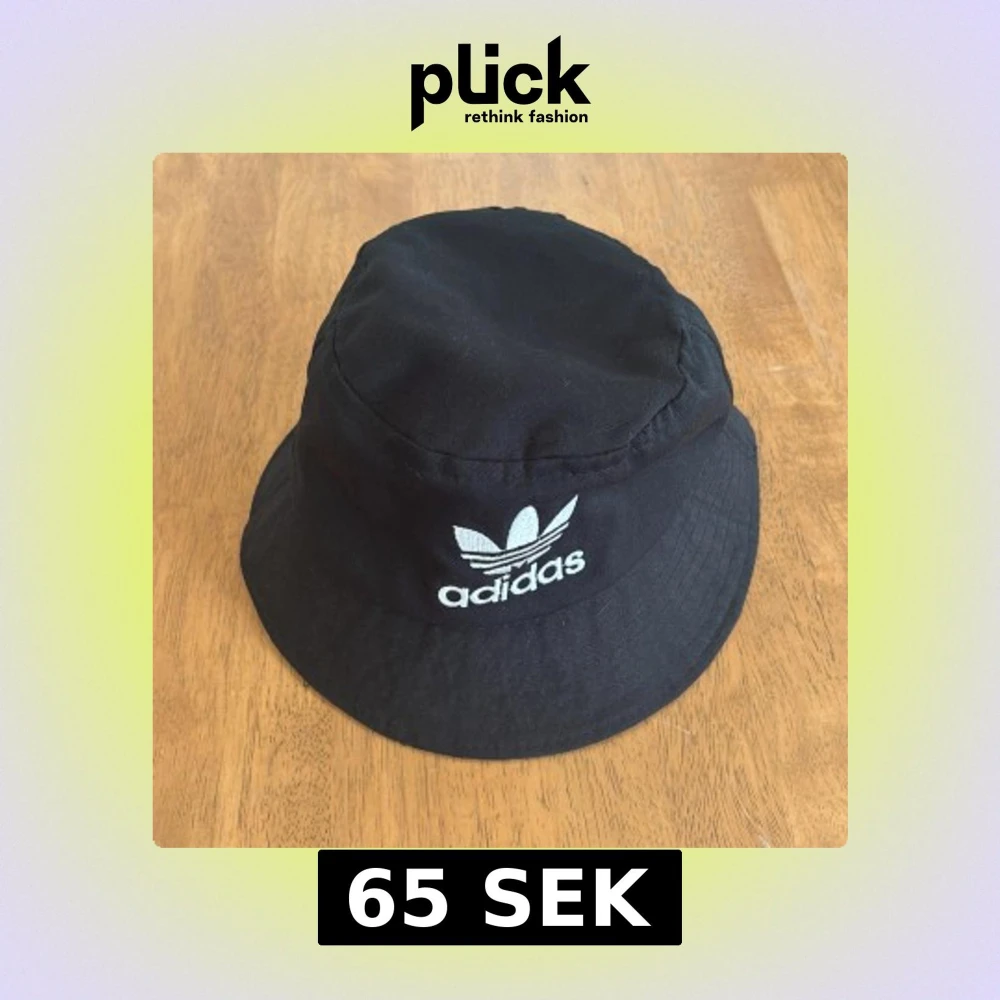 Svart bucket hat från Adidas med broderad vit logga framtill. Klassisk form och tillverkad i bomull, perfekt för en sportig och avslappnad stil.