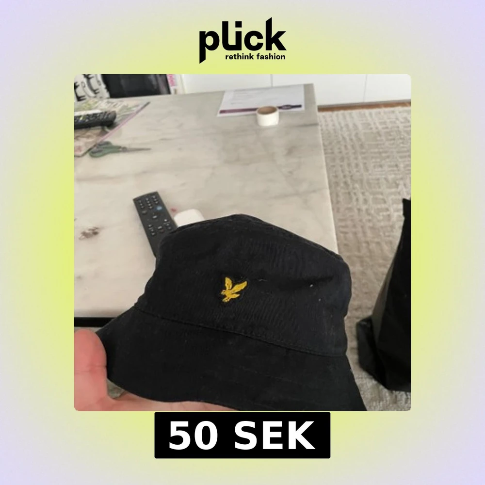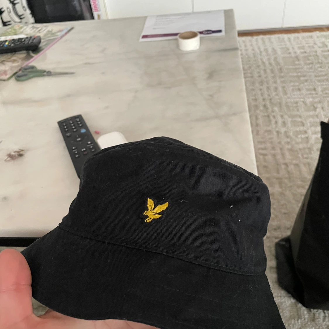 Svart bucket hat från Lyle & Scott med gul broderad logga framtill. Klassisk form och tillverkad i bomull, perfekt för sommardagar. Enkel och stilren design som passar till det mesta.