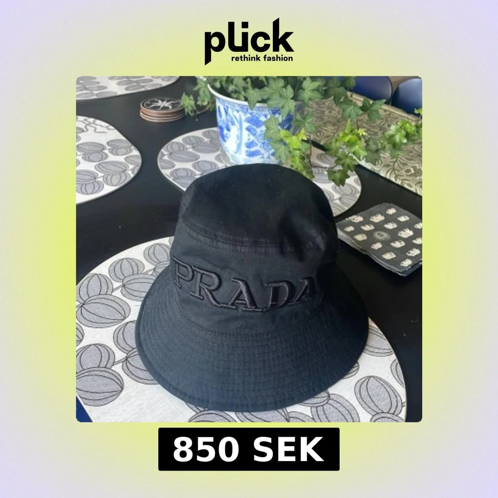 Snygg svart bucket hat från Prada med broderad logga framtill. Klassisk form med bred brätte och diskret ton-i-ton brodyr. Tillverkad i bomull, perfekt för att lyfta din streetwear-look.