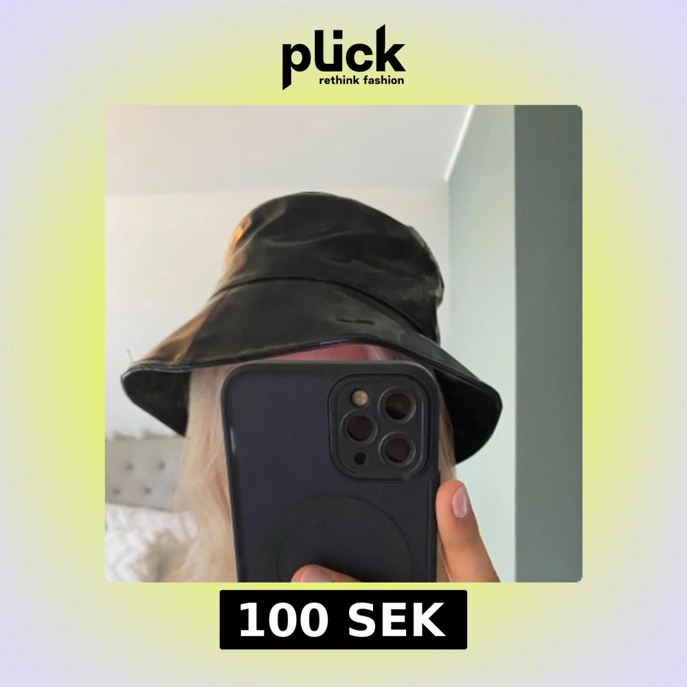 Snygg svart bucket hat som ger en cool och trendig vibe. Hatten har klassisk form med bredare brätte och är perfekt för att lyfta vilken outfit som helst. Inga defekter förekommer!❣️