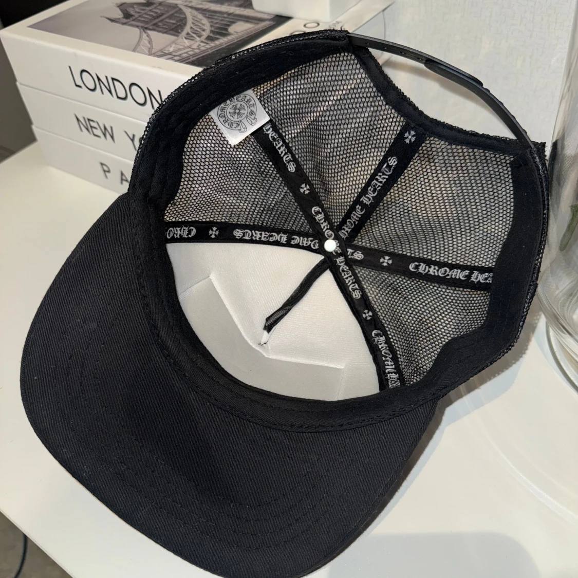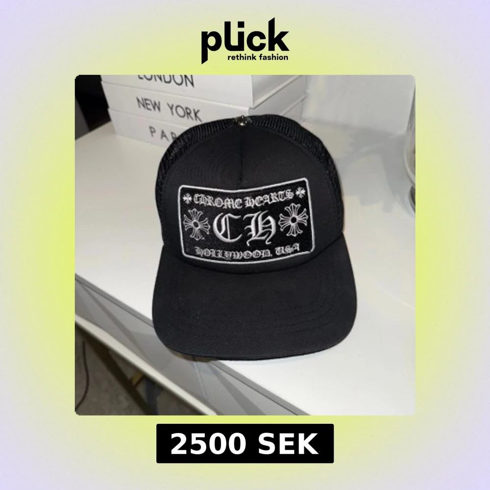 Snygg svart truckerkeps från Chrome Hearts med vit broderad patch framtill och ikoniska CH-detaljer. Kepsen har mesh på baksidan för extra ventilation och justerbar snapback. Perfekt för dig som vill sticka ut med streetwear-vibe.