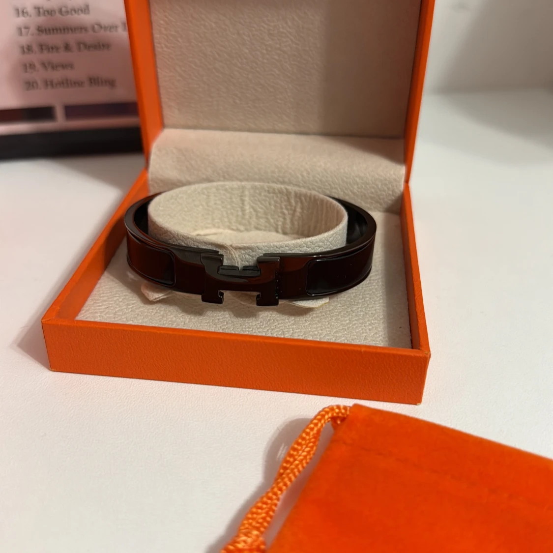 Exklusivt svart armband från H Paris med ikoniskt H-spänne. Kommer i original orange ask, påse och äkthetskort. Snygg och stilren design som lyfter vilken outfit som helst. Perfekt accessoar för dig som gillar lyxiga detaljer.
