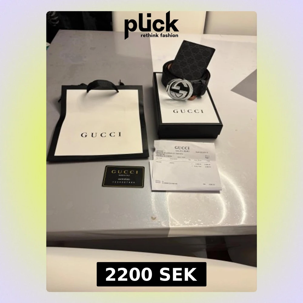 Säljer ett svart Gucci bälte med klassiskt GG-mönster och en stor, rund silverfärgad GG-spänne. Bältet är gjort i äkta skinn och har exklusiv känsla. Kommer med originalförpackning, kvitto och kontrollkort. Perfekt för dig som vill ha en lyxig detalj till outfiten.