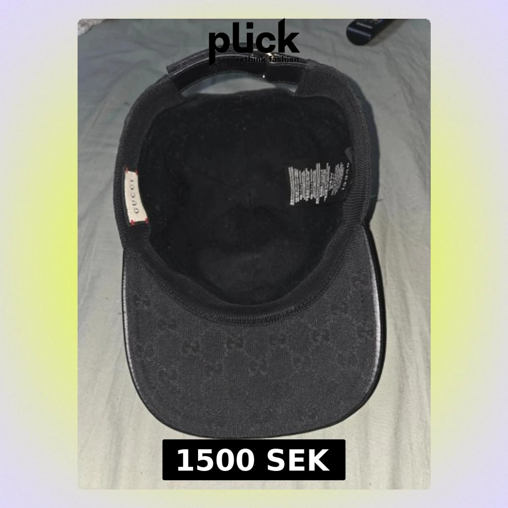 Säljer en svart keps från Gucci med klassiskt GG-monogram över hela tyget. Kepsen har en böjd skärm och justerbart spänne bak i svart läder. På sidan finns en grön och röd rand som ger extra Gucci-vibe. Materialet är canvas och detaljer i läder. Chippet finns kvar såklart är den äkta.
