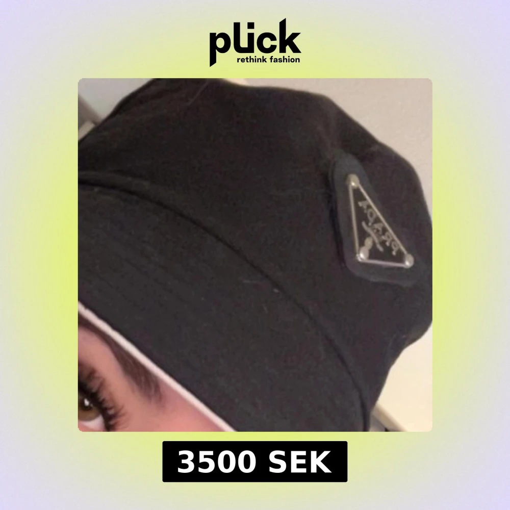 Snygg svart hatt från Prada med en diskret logotyp på sidan. Perfekt för att ge en stilren touch till din outfit. Hatten har en klassisk design och är tillverkad i ett slitstarkt material.