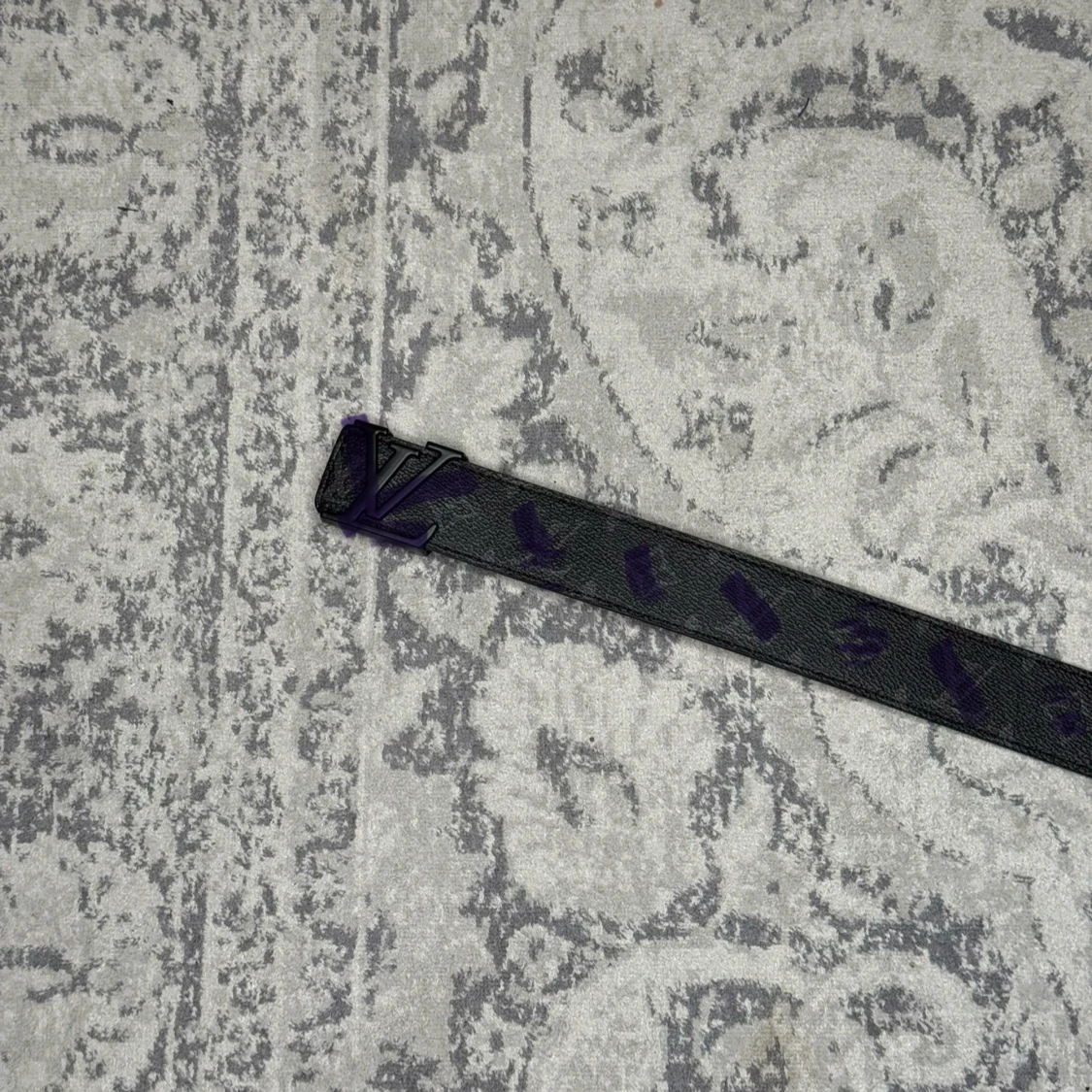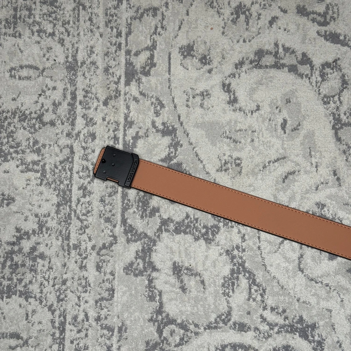 Snyggt och stilrent bälte med svart metallspänne och subtilt mönster över hela remmen. 🔘 Storlek: 105 cm 🔘 Skick: Oanvänt