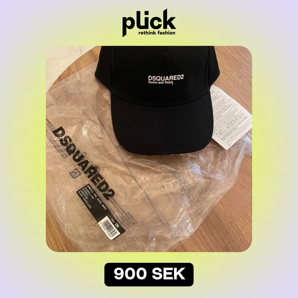 Snygg svart keps från DSQUARED2 med texten 'Sweat and Tears' framtill och 'Power Twins' baktill. Kepsen är i nytt skick och kommer med originalförpackning. Perfekt för en cool och avslappnad stil.