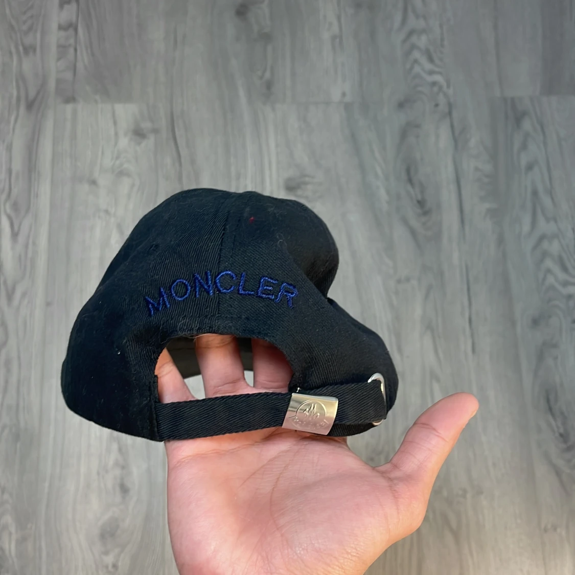 Snygg svart keps från Moncler med broderad logotyp framtill och justerbart spänne bak. Perfekt för en stilren look.