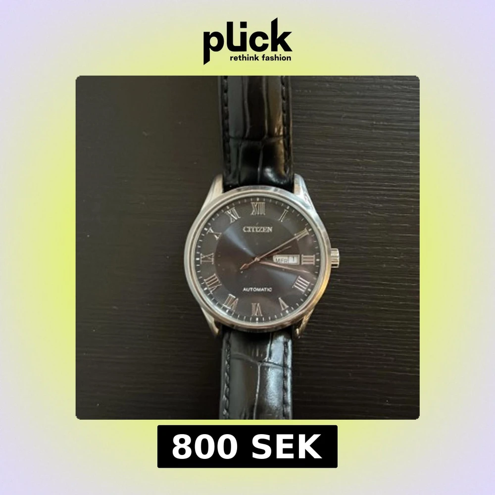 Elegant klocka från Citizen med svart urtavla och romerska siffror. Den har en automatisk rörelse och datumvisning. Armbandet är i svart skinn med krokodilpräglat mönster. Perfekt för den stilmedvetna! Pris kan discuteras