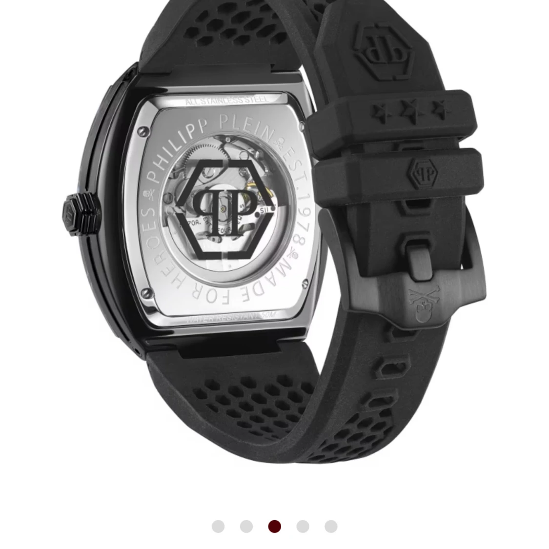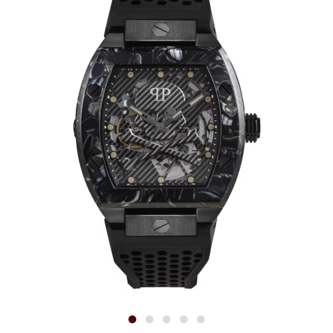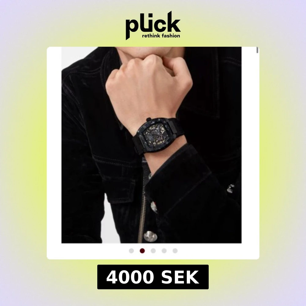 Klockan är helt ny oöppnad kvitto medföljs, Snygg svart klocka från Philipp Plein med robust boett i rostfritt stål och coolt mönstrad urtavla. Klockan har ett sportigt svart silikonarmband med detaljer och logga, samt transparent baksida som visar urverket. Perfekt accessoar för en modern look.