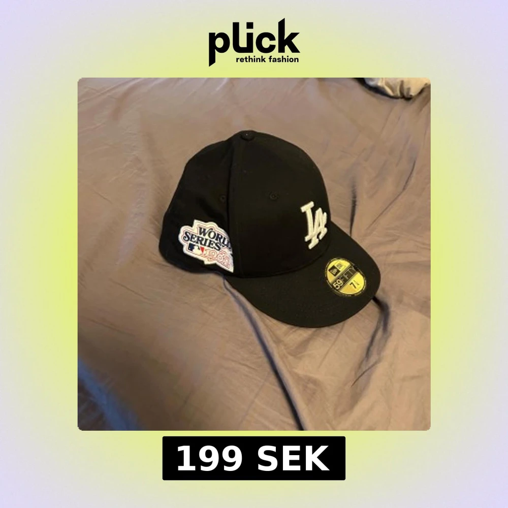 Snygg svart keps från New Era med LA Dodgers-logga framtill och World Series 1959-märke på sidan. Klassisk 59FIFTY-modell med böjd skärm och broderade detaljer. Perfekt för dig som gillar baseballstil.