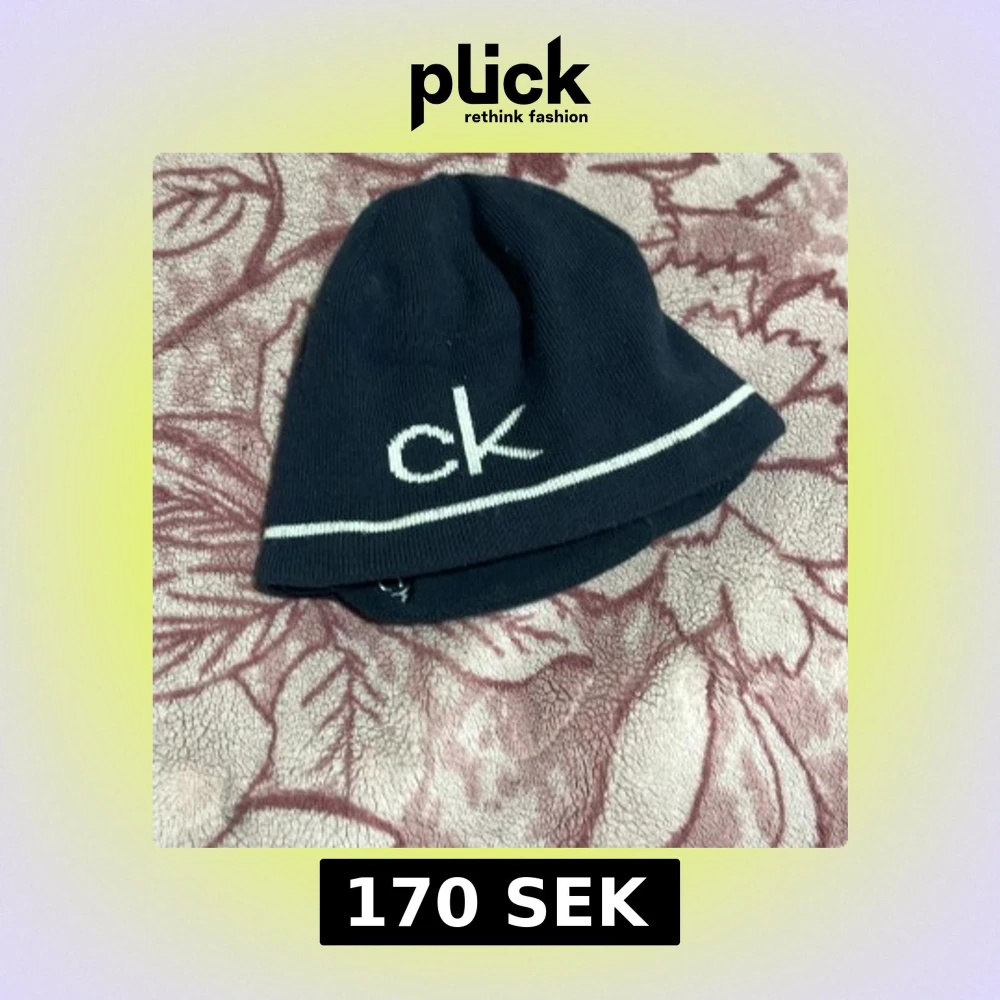 Snygg svart mössa från Calvin Klein med vit broderad logga 'ck' framtill. Mössan har en enkel design med en vit rand som detalj nära kanten. Perfekt för att hålla värmen under kyliga dagar.