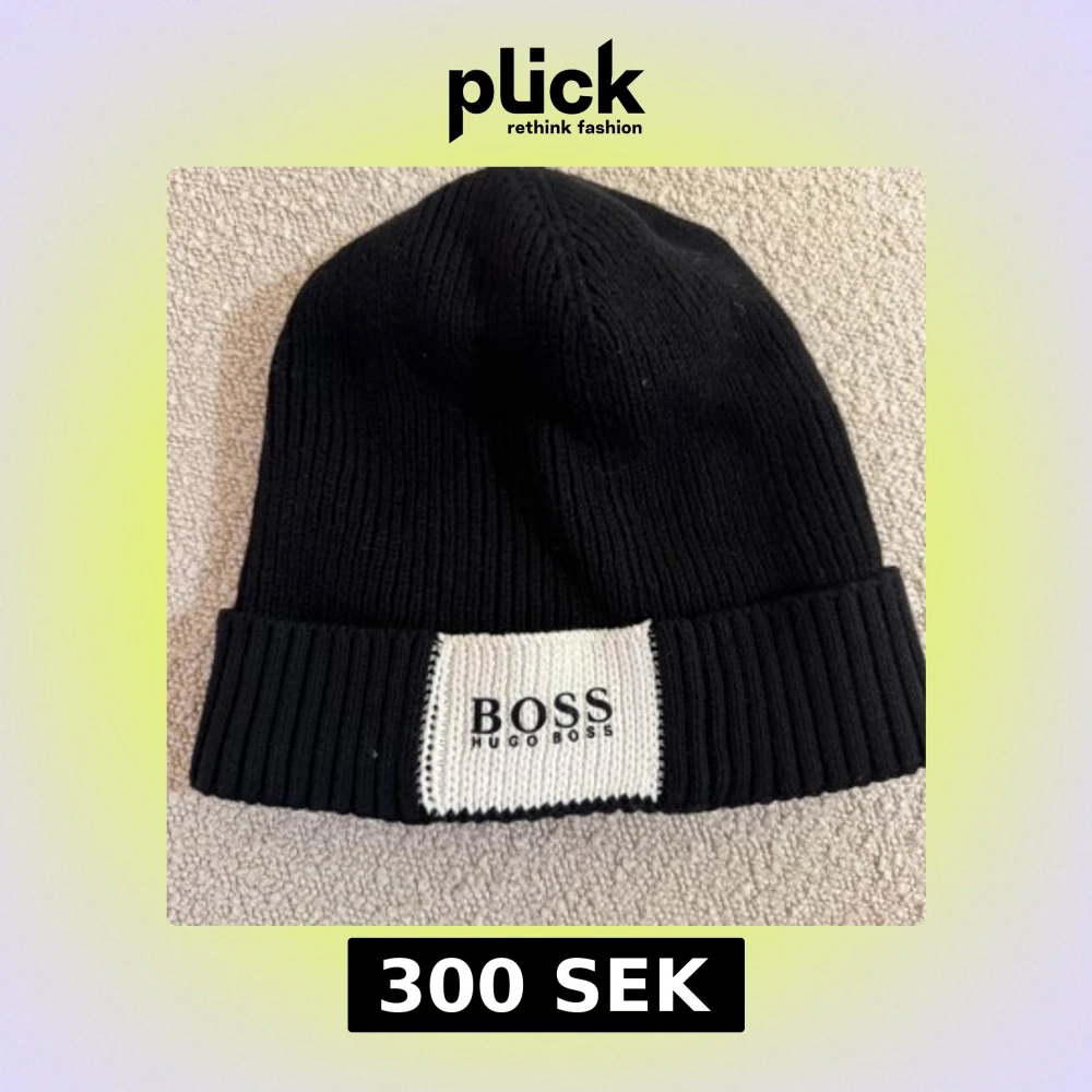 Snygg svart mössa från Hugo Boss med ribbad design och vit etikett med logotyp framtill. Perfekt för att hålla värmen under kyliga dagar.