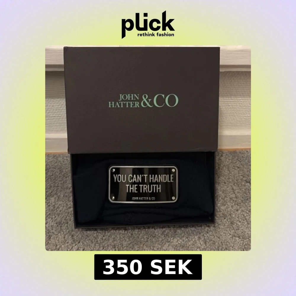 Snygg svart mössa från John Hatter & Co med en metallplatta framtill där det står 'YOU CAN'T HANDLE THE TRUTH'. Perfekt för att ge en cool touch till din outfit. Den är lite sönder med.