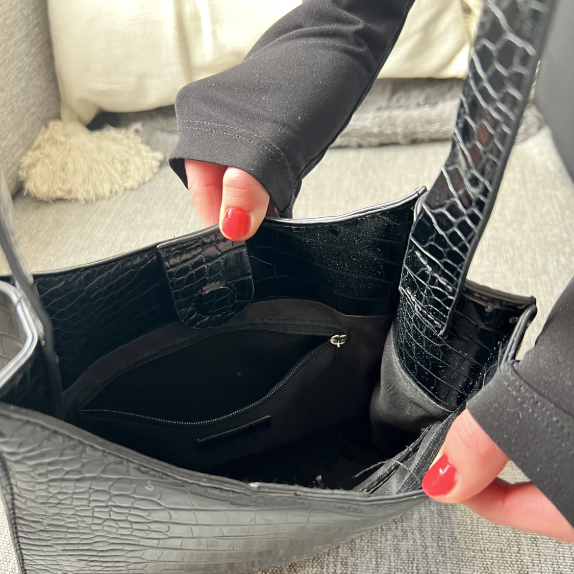 Svart handväska i ormskinn (fake) Rymlig Köparen står för frakt 🌸