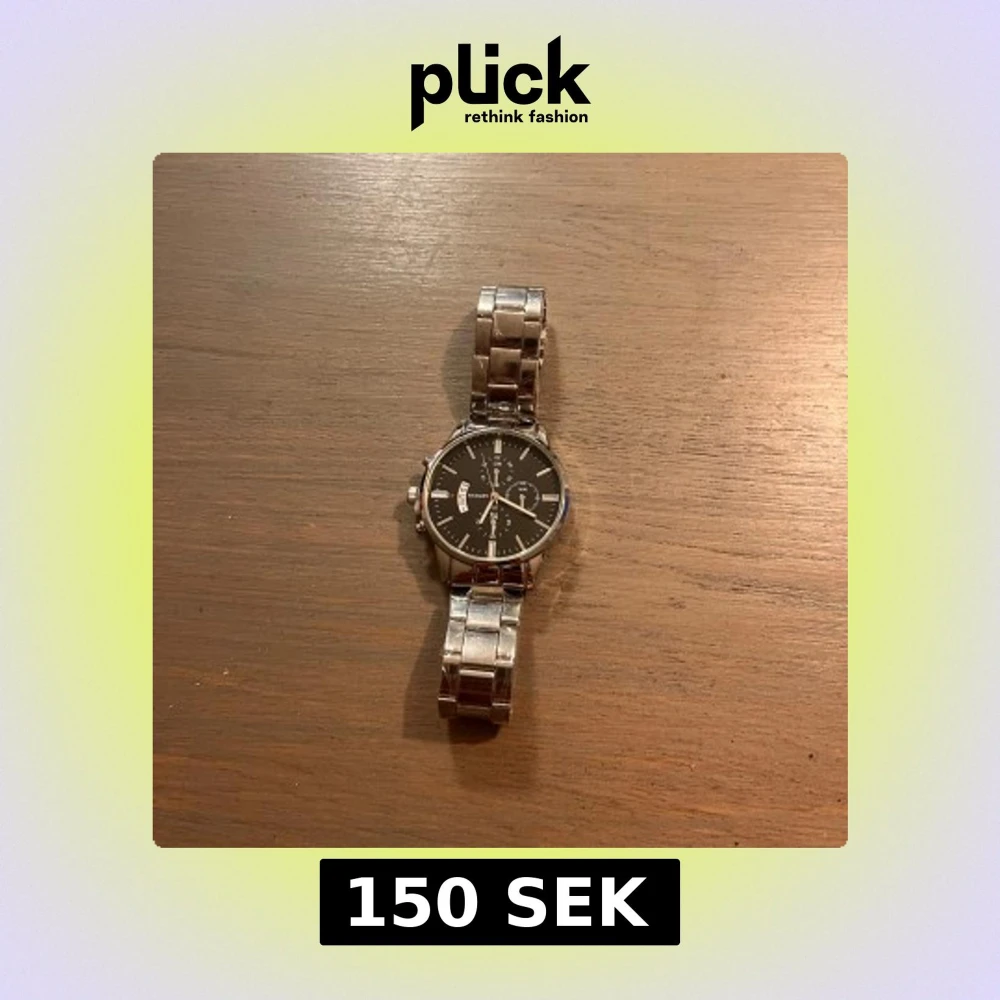 Stilren klocka med svart urtavla och silverfärgat armband i metall. Klockan har flera små urtavlor, dag- och datumvisning samt klassisk rund form. Perfekt accessoar för dig som gillar en clean och tidlös look.