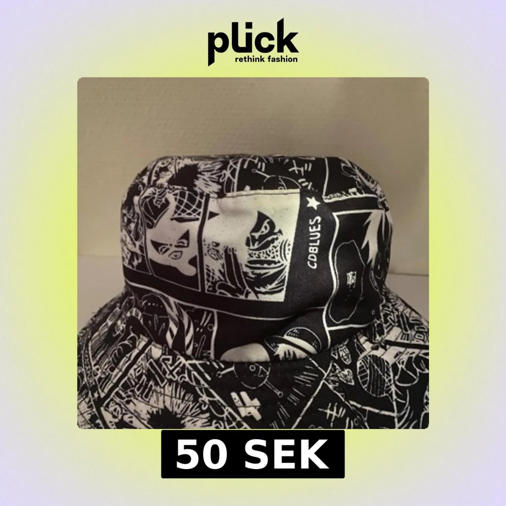 Cool bucket hat från CD BLUES med svart och vitt serietidningsinspirerat mönster. Hatten har bred brätte och är tillverkad i bomull, perfekt för dig som vill sticka ut med en unik accessoar.