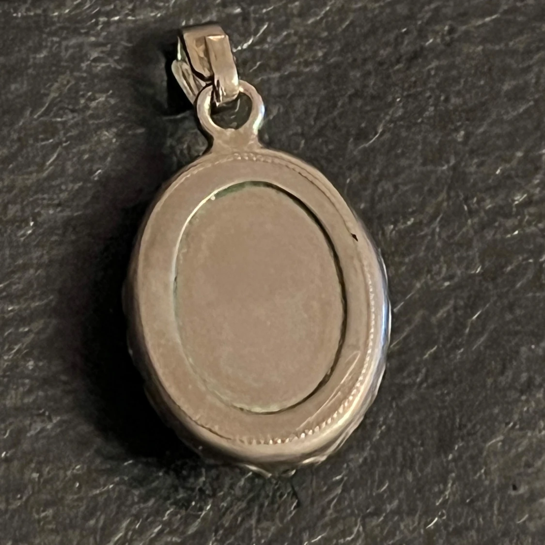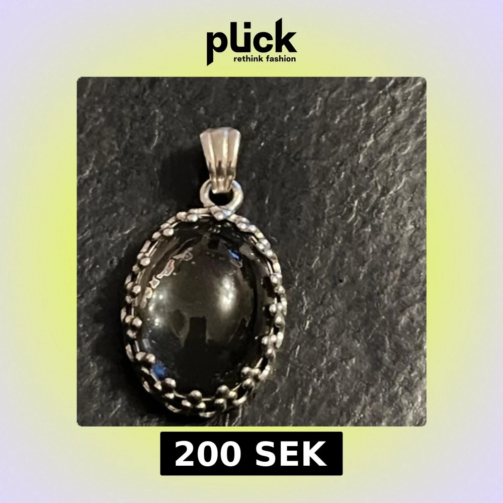 Elegant svart oval hängsmycke med en glansig sten infattad i en detaljerad silverram. Perfekt för att ge en stilren touch till din look.Pendentif ancien argent hématites