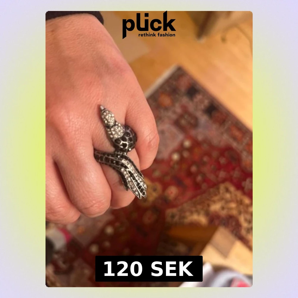 Cool ring i form av en påfågel gjord i svart metall med glittrande strass på huvudet och kroppen. Ringen har en unik design som verkligen sticker ut och passar dig som gillar edgy accessoarer. Perfekt för att ge din outfit en extra twist.