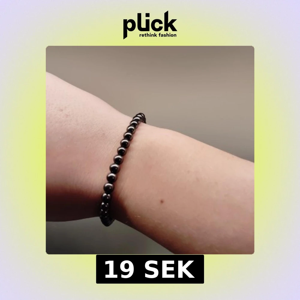 Elegant svart armband med glänsande pärlor. Perfekt för att ge en stilren touch till din outfit.