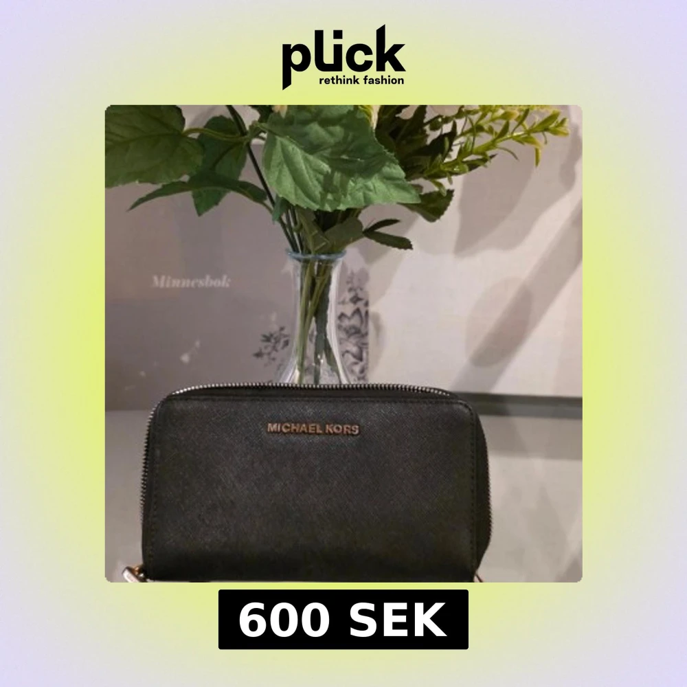 Snygg svart plånbok från Michael Kors med stilren design och silverfärgade detaljer. Plånboken har en praktisk dragkedja runt om och ett handtag i sidan. Materialet är skinn med en lätt textur som ger en exklusiv känsla. Perfekt för dig som gillar klassiska accessoarer.