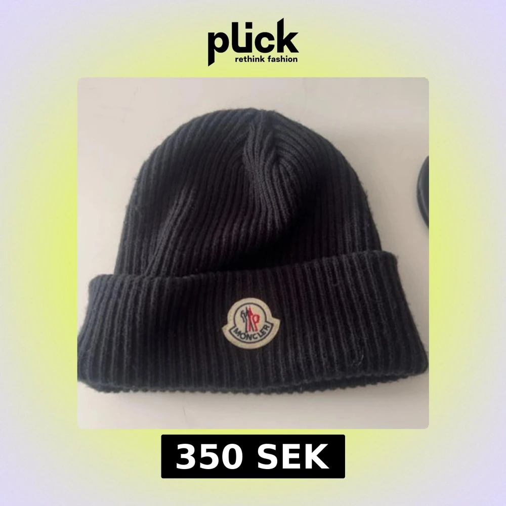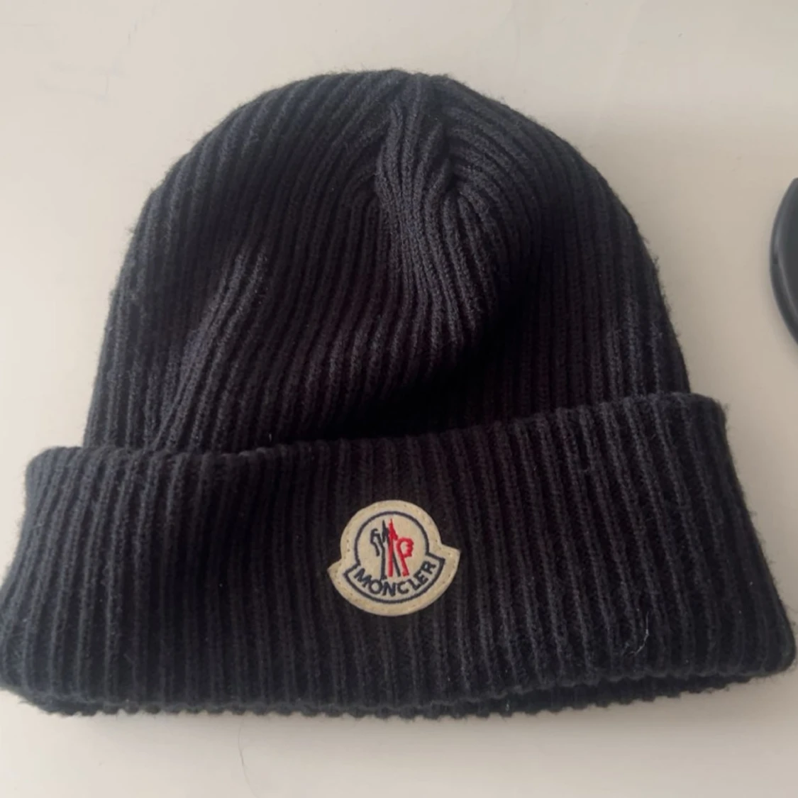 Svart ribbstickad mössa från Moncler med klassisk uppvikt kant och ikonisk Moncler-logga framtill. Perfekt för kalla dagar och ger en clean look. Materialet är mjukt och värmande, och den svarta färgen gör den enkel att matcha med allt.