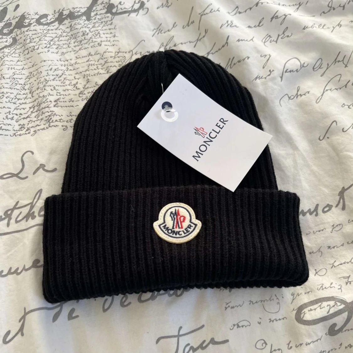 Snygg svart ribbad mössa från Moncler med broderad logotyp framtill. Perfekt för kyliga dagar och ger en stilren look. Tillverkad i mjukt material för extra komfort.