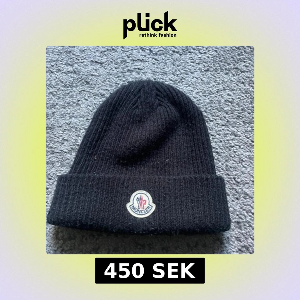 Svart ribbstickad mössa från Moncler med klassisk uppvikt kant och broderad logotyp framtill. Perfekt accessoar för kyliga dagar och ger en clean, stilren look.