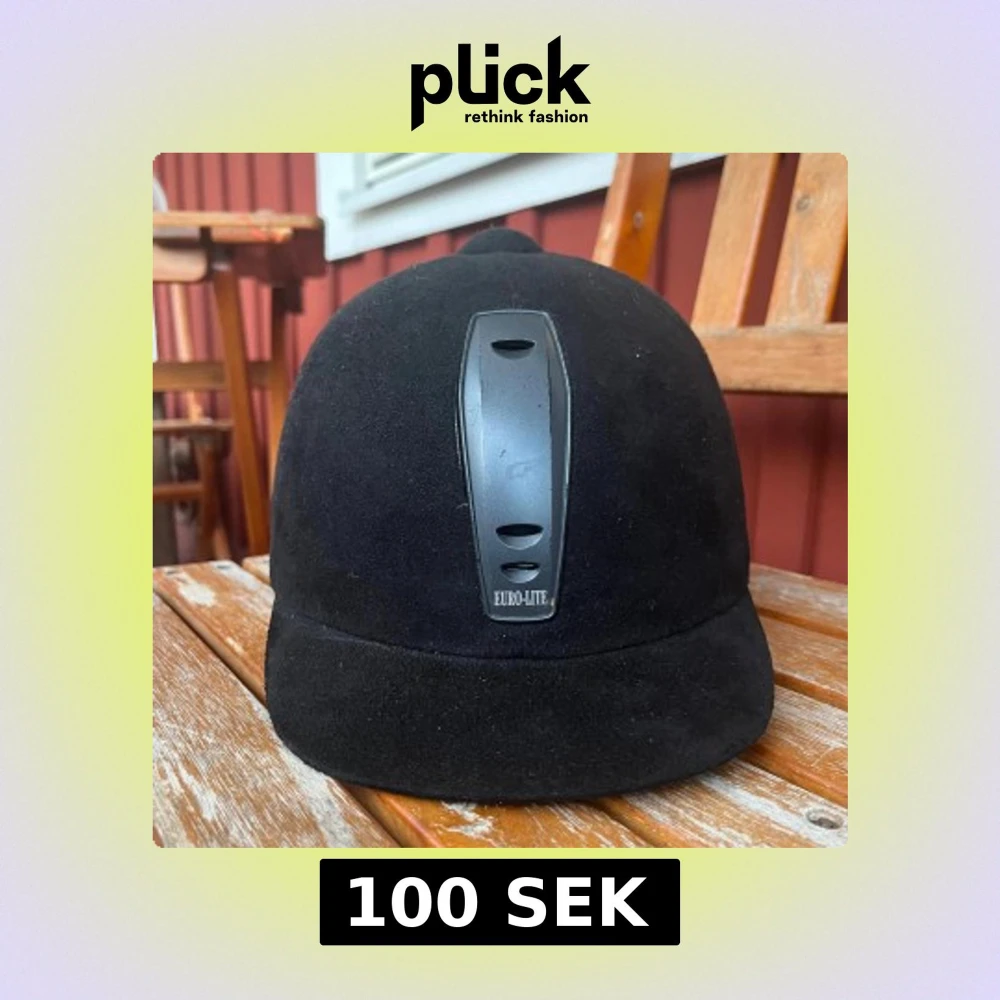 Snygg svart ridhjälm från Euro-Lite med mockayta, Klassisk rundad form med kort skärm och justerbart hakband. Perfekt för dig som vill ha stil och säkerhet när du rider.