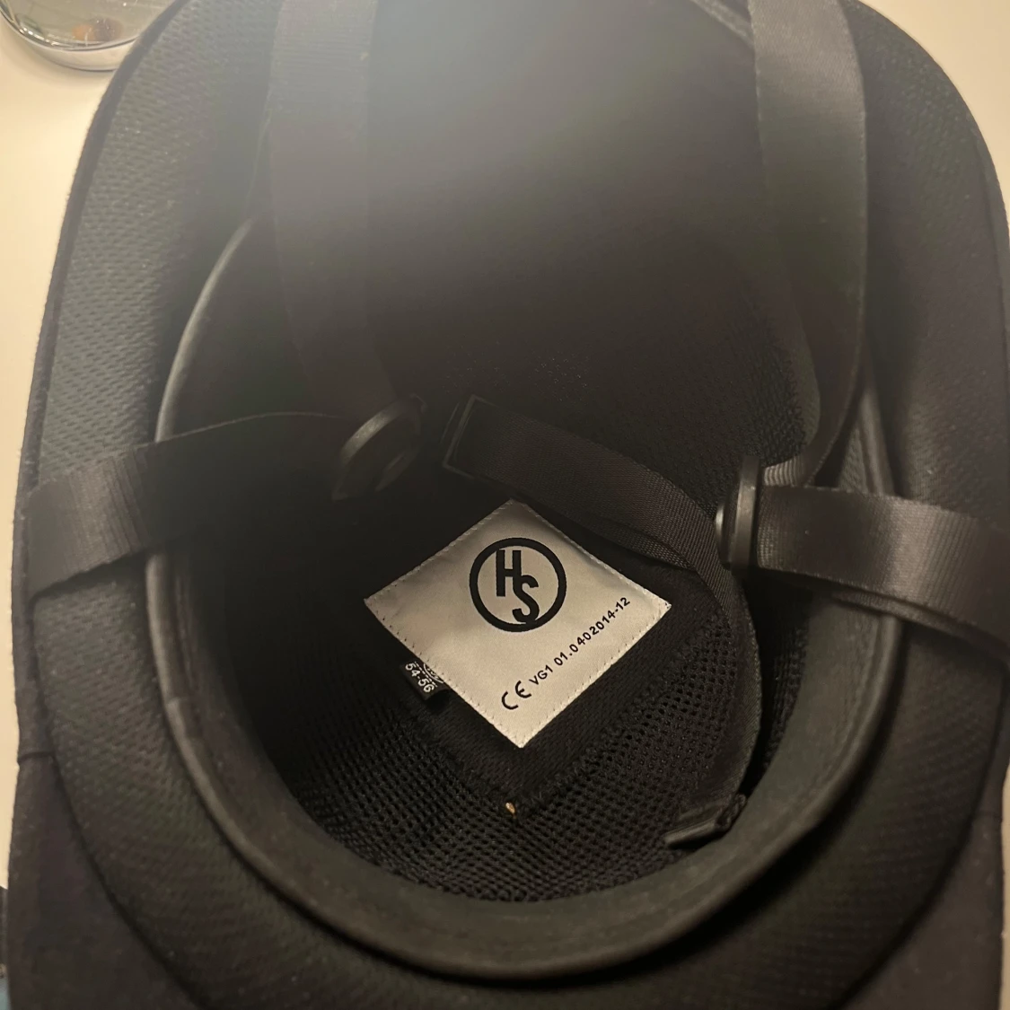 Snygg svart ridhjälm från HS med rundad form och matt finish. Framtill finns en cool svart detalj med mesh och HS-logga. Justerbart hakband och bekväm insida i meshmaterial. Perfekt för dig som vill ha stil på ridbanan.