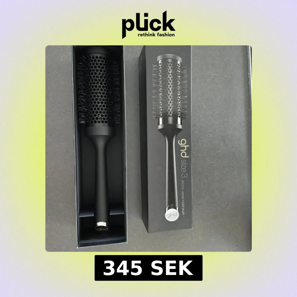Säljer en svart rundborste från ghd, storlek 3. Den har en keramisk beläggning som hjälper till att skapa volym och glans vid styling. Perfekt för att forma och torka håret snabbt och effektivt.