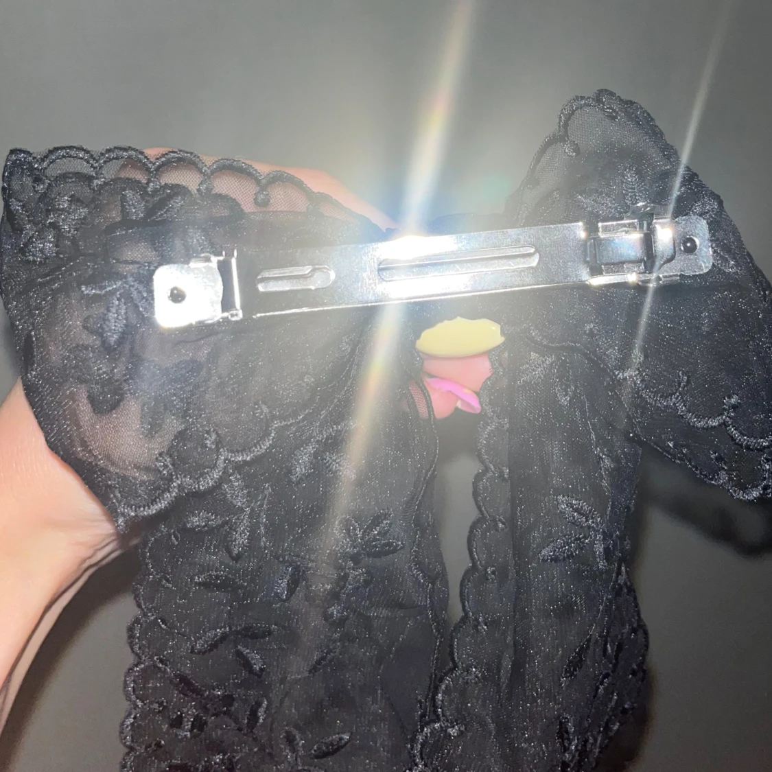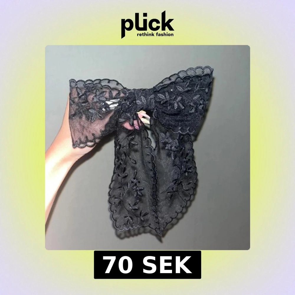 Superfint stor rosett i spets och broderade blommor. Rosetten har vågiga kanter och fästs enkelt med ett metallspänne. Aldrig använd