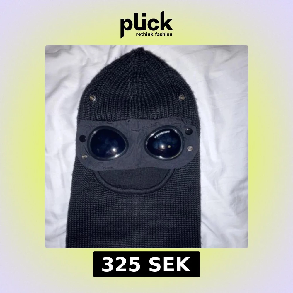 Cool svart stickad mössa från C.P. Company med inbyggda glasögon. Perfekt för att ge en unik stil och hålla värmen. Mössan har en tight passform och är tillverkad i ett mjukt material.