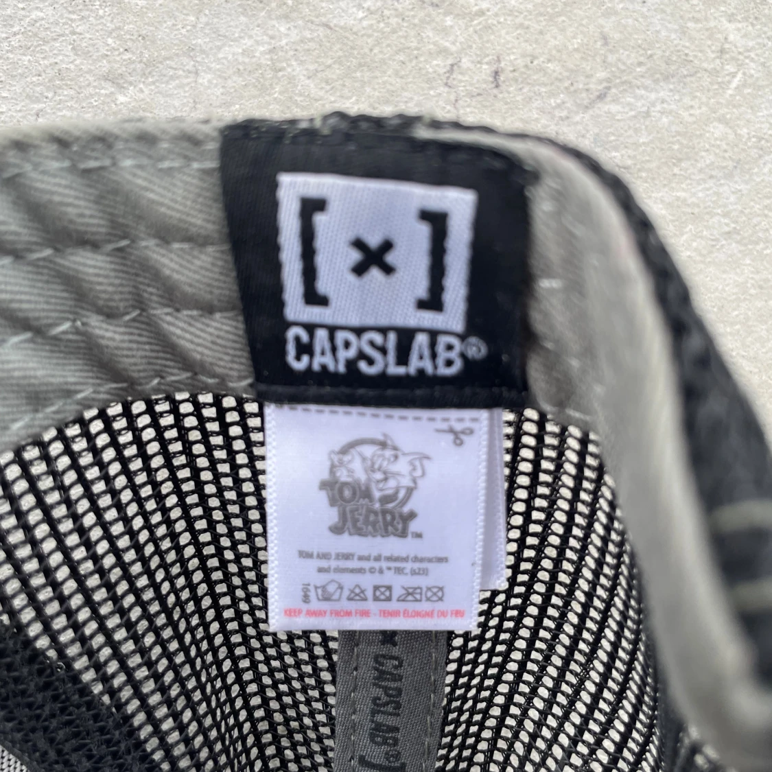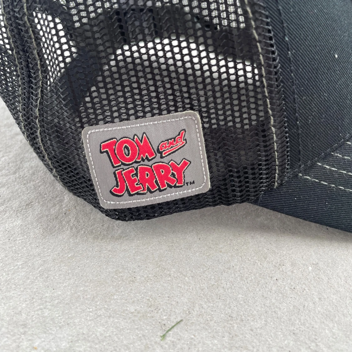 Svart keps med mesh på sidorna och bak, samt broderad patch framtill med Tom från Tom & Jerry. Grå och vita kontrastsömmar på skärmen och en Tom & Jerry-logga på sidan. Perfekt för dig som gillar retro och tecknade serier.