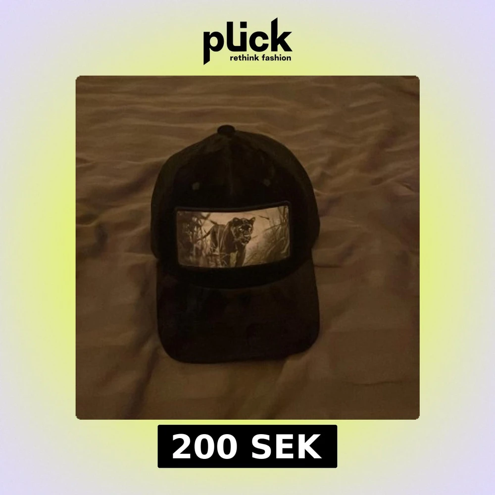 Cool svart truckerkeps med mesh på baksidan och ett stort tryck framtill av en panter i djungeln. Kepsen har böjd skärm och justerbar passform. Perfekt för dig som vill sticka ut med ett djurmotiv.