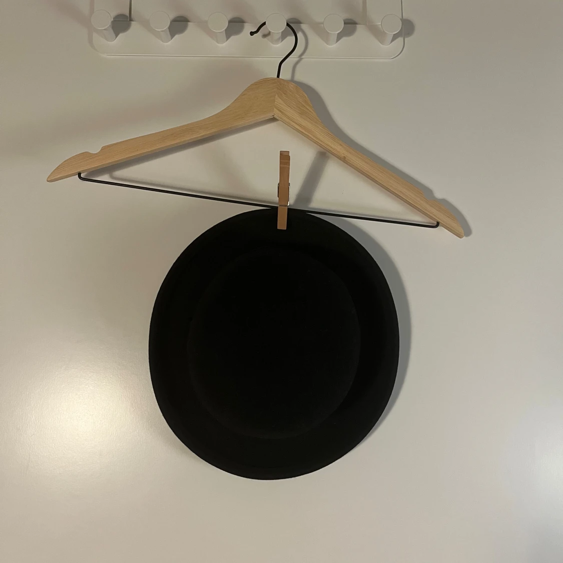 Klassisk svart hatt i ull från H&M Divided. Hatten har rundad kulle och smal brätte, samt ett diskret band runtom. Perfekt accessoar för att lyfta din stil med en tidlös och cool touch.