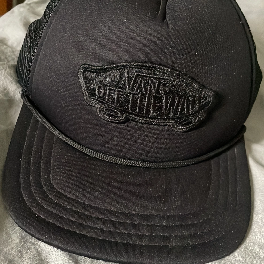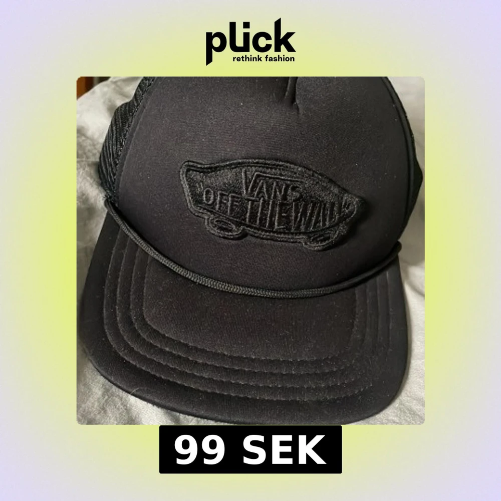 Säljer en svart Vans truckerkeps med broderad 'Off The Wall'-logga framtill. Kepsen har böjd skärm, mesh på baksidan och justerbar snapback. Stilren och enkel design som passar till streetwear och skate.