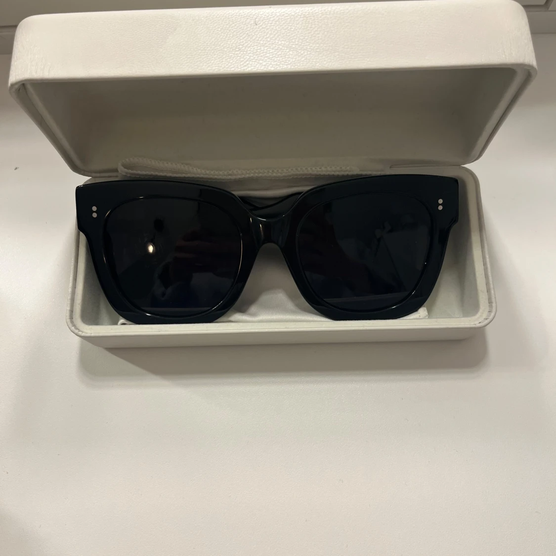 Snygga svarta solglasögon från CHIMI med en stilren design. De har en fyrkantig form och kommer i ett elegant fodral. Perfekta för att ge din look en cool touch. Använda sparsamt, köpta sommaren 2024! nypris: 1400💕