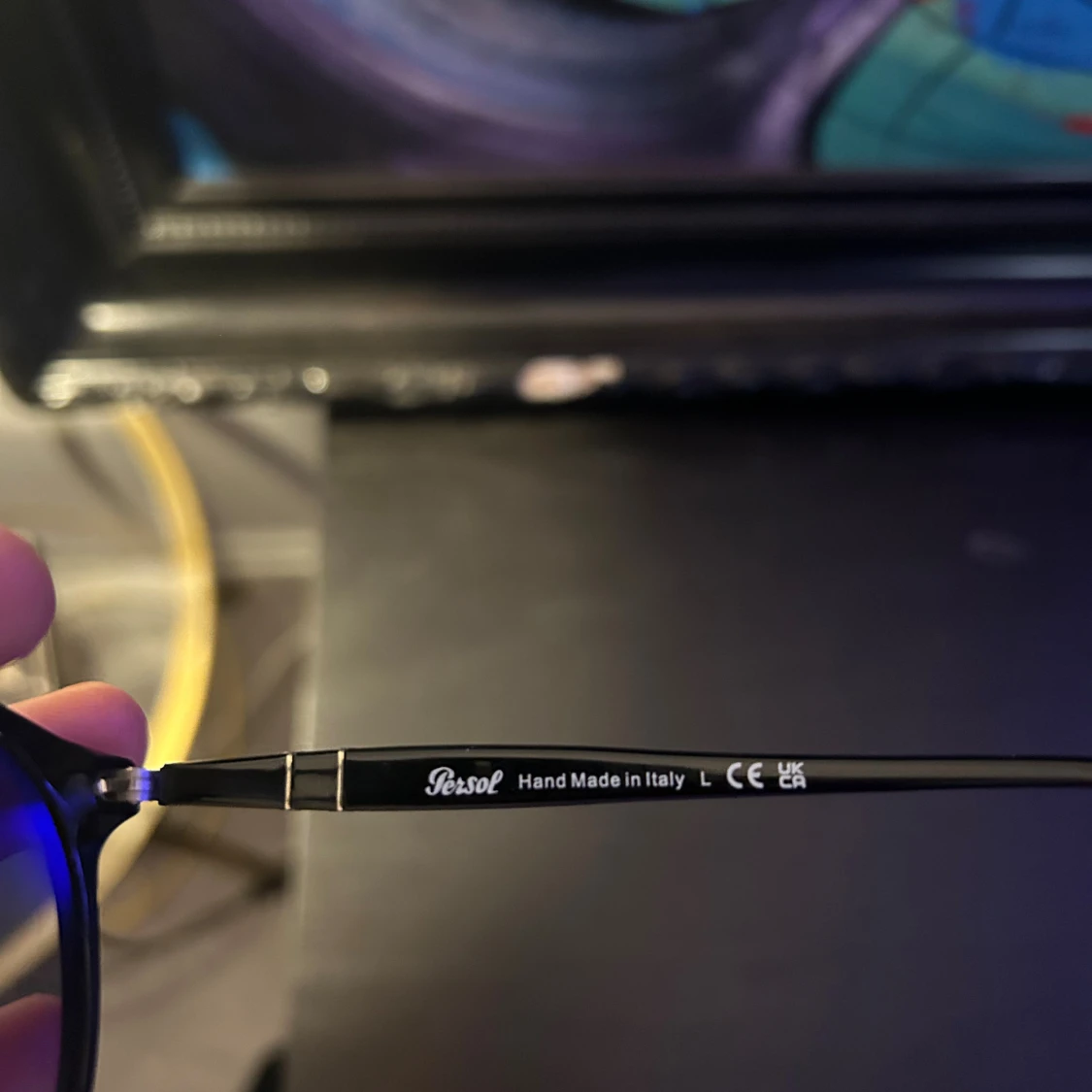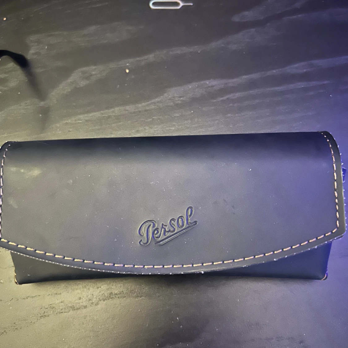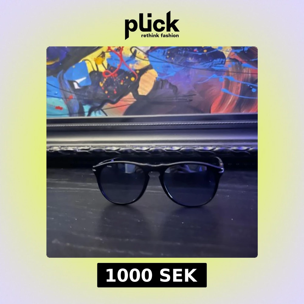 Snygga svarta glasögon från Persol, handgjorda i Italien. De har en klassisk rundad form med tunna bågar och diskreta silvriga detaljer vid gångjärnen. Perfekta för dig som vill ha en stilren och tidlös look.