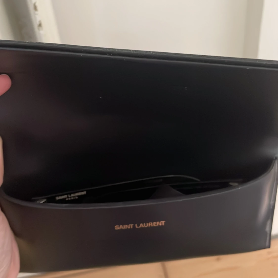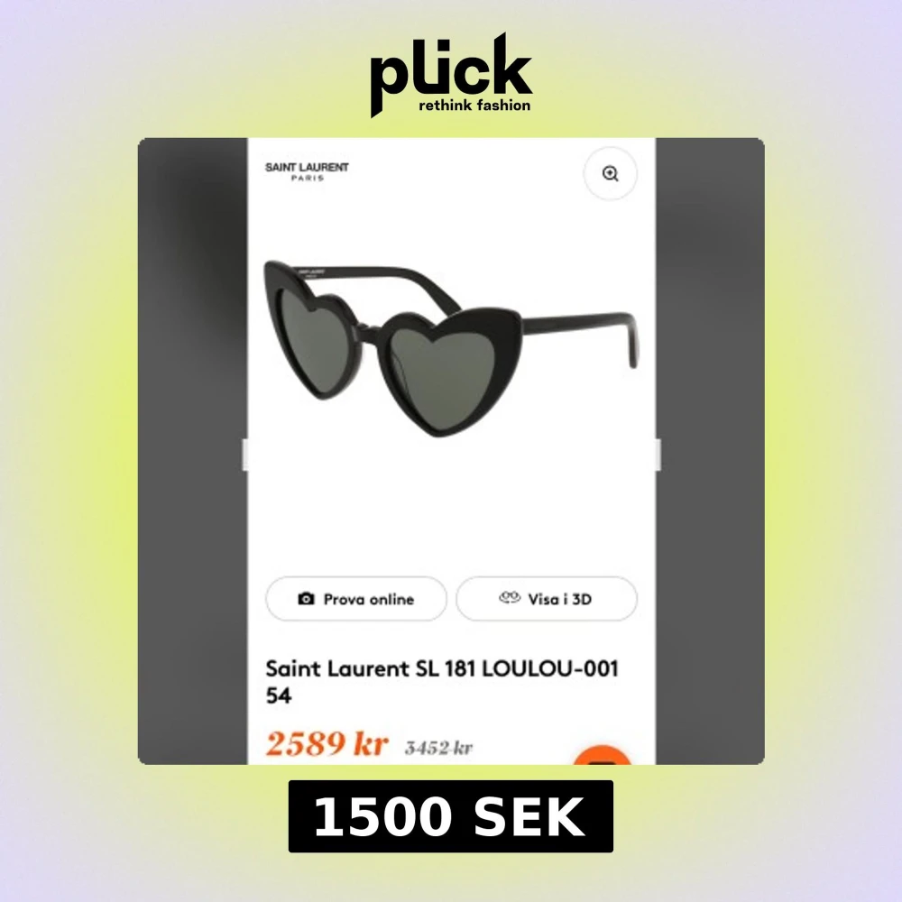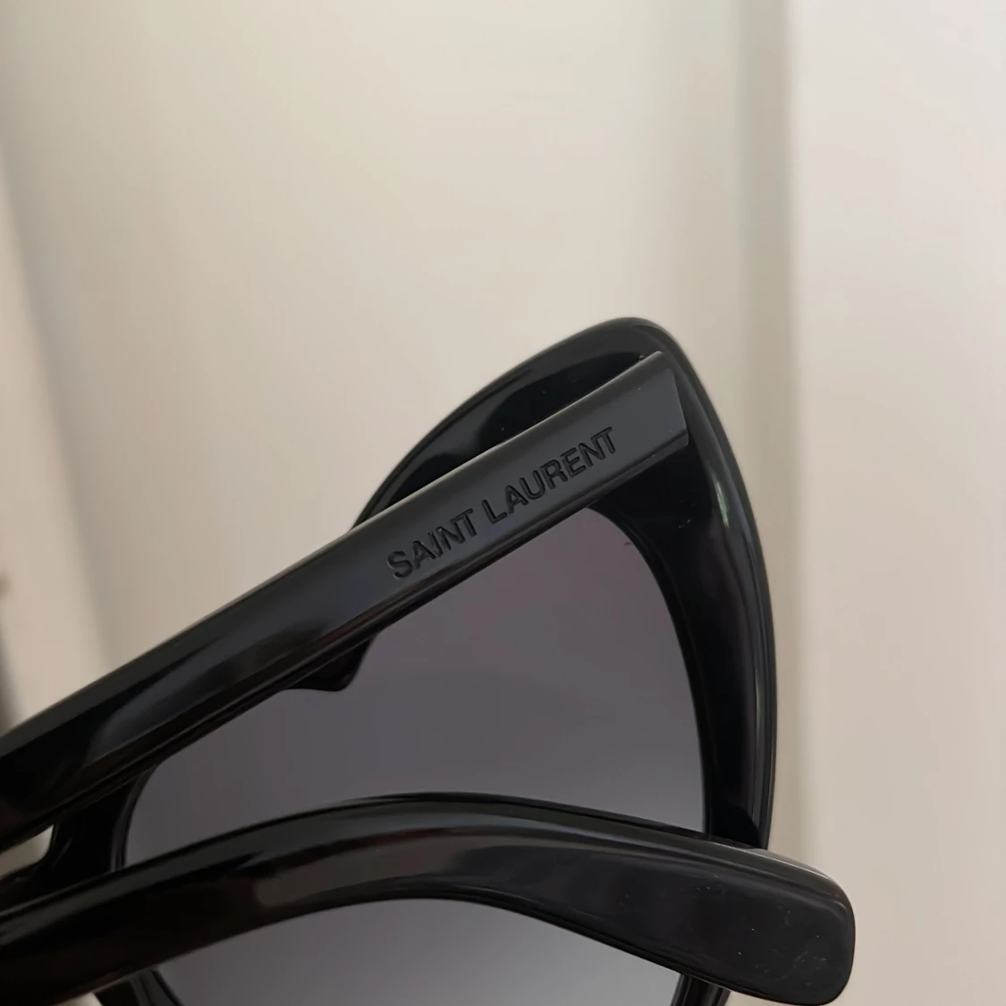 Ikoniska Saint Laurent LouLou SL 181 solglasögon med hjärtformade svarta bågar och mörka linser. Statement-piece med cool design och logga på. Perfekt för dig som vill sticka ut. Köpta för originalpris 3500 på Synsam för något år sedan, har ej kommit till användning så de är i gott skick.